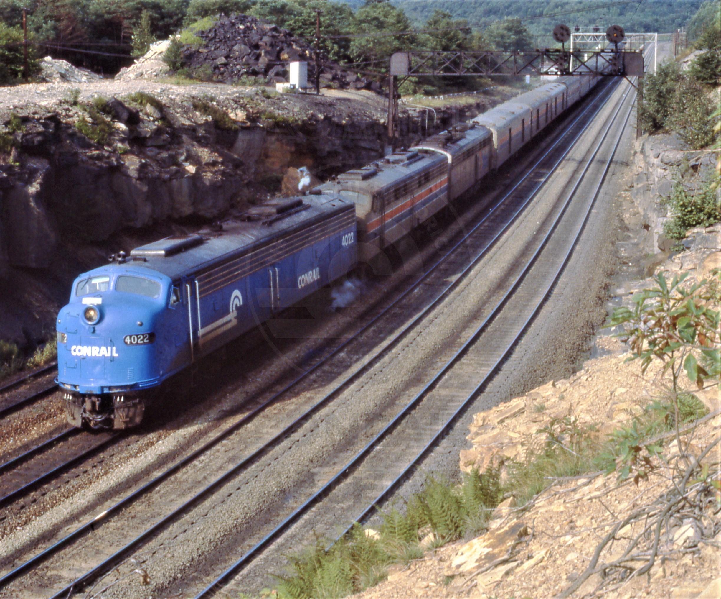 E-8 #4022 on Train #40 "The Broadway Limited", westbound at Bennington Curve, Gallitzen, PA on July 15, 1977