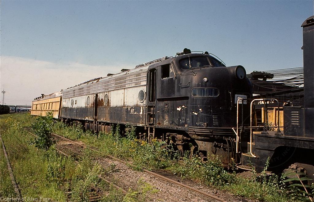 NYC paint remains on the sides of PC E-8A 4092 as the cab unit rests retired at the Juniata shops deadline in August, 1978.