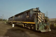 CR-operated NJDOT GP40P's 3674 (ex-CNJ CR roster 4103) and 3682 (ex-CNJ CR roster 4111) at South Amboy in July, 1977.