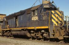 CR-operated NJDOT GP40P 4106 (ex-CNJ 3677) awaiting service at Elizabethport, NJ in February, 1979.
