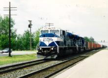 Conrail ELPI-5B with a pair of SD80MAC's, including 4106 on the point, at Waterloo, IN on May 25, 1996. This was my first ever shot of the then new 80MAC's.