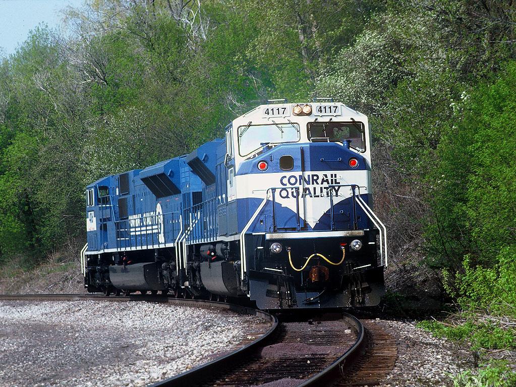 Conrail 4117 and 4116 climb the "Back-Track" as they head south at Conrail's Ashtabula Harbor Ohio Yard.