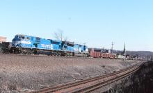 CR 4123 & 4122 are seen leading a WB at New Brighton PA on 2/7/98.