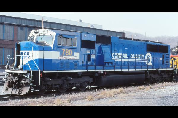ELIN-7A heads south on the Conrail Marion Branch as they split through Rock Cut at the bottom of the Wabash Hill on May 12, 1998. Kevin Nelson photo with permission