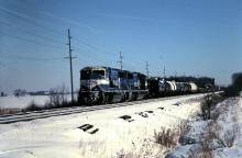 Previous Next Photo By Chris Howe CR SD70MACs 4144 and 4142 lead PIEL-7 east of Stryker, OH on January 7, 1999. Chris Howe photo Year 1999 Original Date 1/7/99 Location Stryker OH Conrail Number 4144 4142 Additional Galleries Chris Howe's Conrail action 1999 Collection CRHS Conrail Photo Archive Contributions