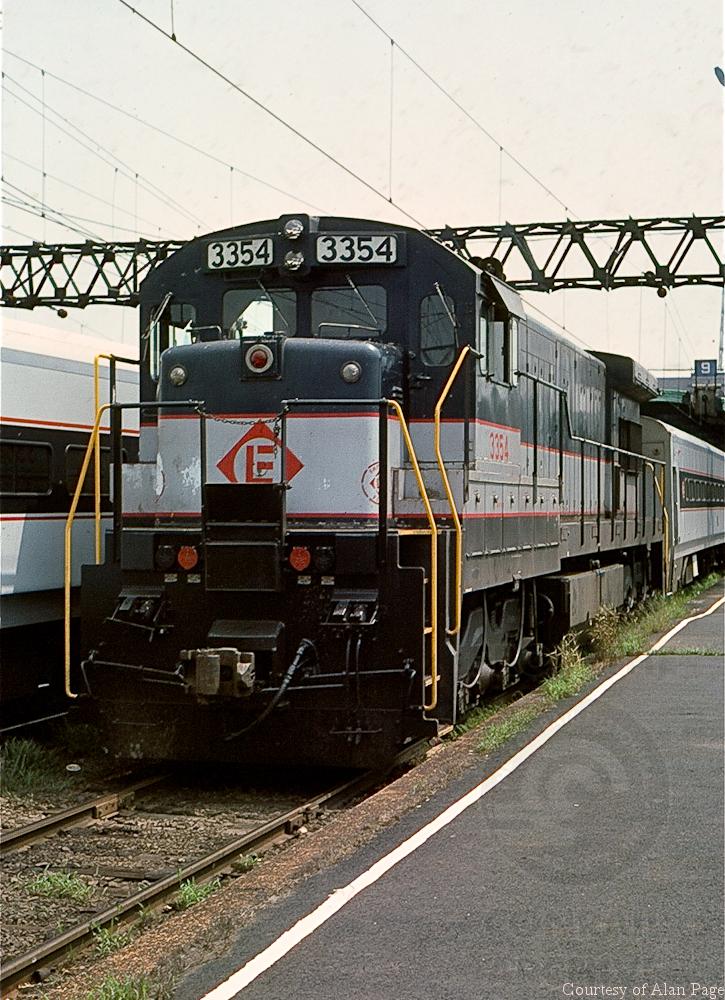 CR-operated former EL U34CH 3354 (CR roster 4154) waits to depart Hoboken in August, 1977.