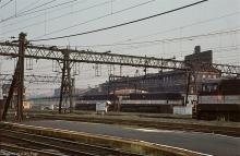 CR-operated former EL U34CH's 3354 (CR 4154) and 3361 (CR 4161) are part of a trio preparing to depart Hoboken in August, 1977.