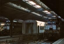 CR-operated former EL U34CH 3355 and 3369 (CR roster 4155 and 4169, respectively) wait with their Comet I cars to pull out of Hoboken Terminal in August, 1977.