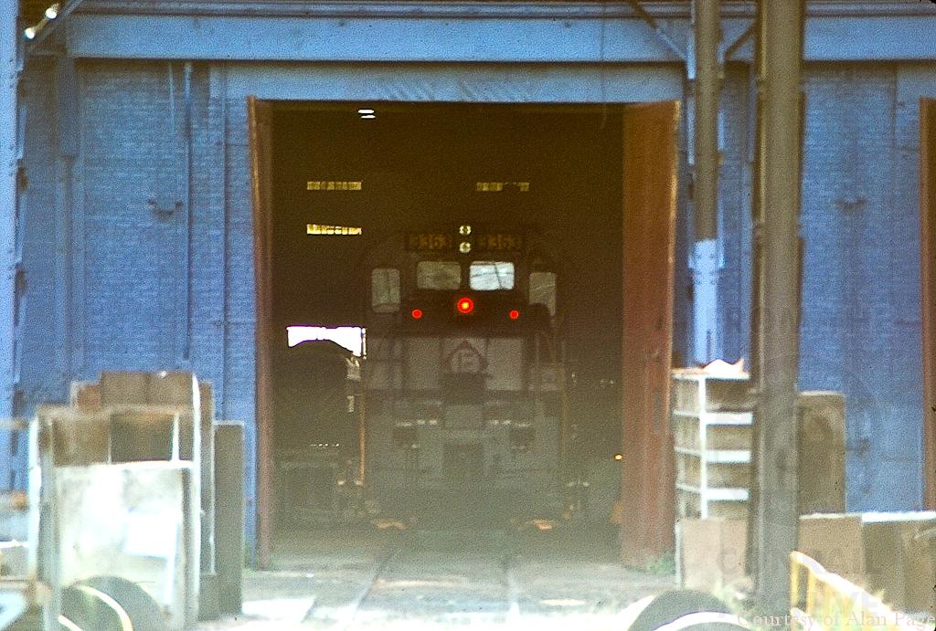 CR-operated former EL U34CH 3363 (CR 4163) receives service at the Elizabethport, NJ shops in June, 1977.