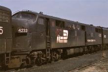 PC E-7A 4233 sits in a line of E-units at the South Amboy engine terminal in March, 1978.