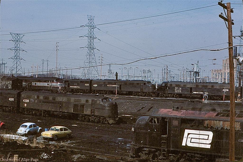 With E-7A 4224 in the foreground, 4258 sits in the back row of a number of E-8As and E-7A 4233 lined up ready for service to South Amboy station.
