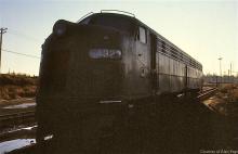 Late in the day, former PC E-8A 4323 rests outside the South Amboy engine facility in November, 1978. This E-unit would later become one of two CR-operated E-8As painted in white NJ Transit colors,