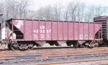 Previous Next Photo By Joseph R. Quinn Collection of Chris Carangi CR 433257 is seen at Kingston, NY in April of 1981. Car is ex PRR 277505 and was painted P62 3-77. Year 1981 Original Date 4/1/81 Location Kingston NY Equipment Type Class H39B Conrail Number 433257 Collection CRHS Conrail Photo Archive Contributions