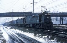 WASE-7a rolls by Monmouth Junction behind three E44's. The Junction was the location where the Jamesville Secondary and abandonned branch to Rocky Hill connected with the " Corridor"