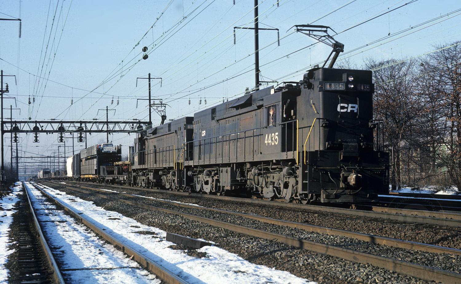 MD-6 is north (east) bound approaching Elmora with the 4435 and 4405 for power...