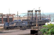 CR E-44's 4421 and 4438 wait at the Enola engine terminal in May, 1980.