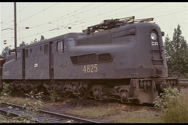E-44's 4446 and 4401 have Alco S-2 9740 tagging along as they rumble through Morrisville on the Northeast corridor in April, 1977.