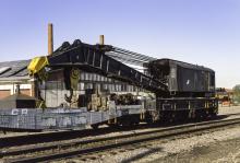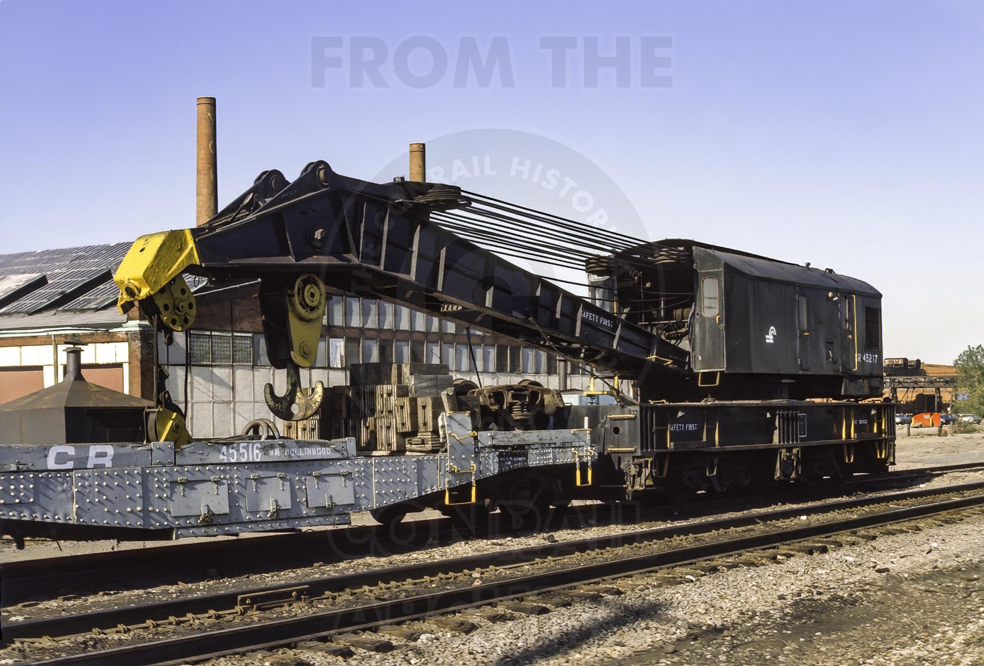 CR 45217 Collinwood Yard 'Big Hook', 250-ton Industrial Brownhoist wreck crane and CR 45516 crane tender flat car at Collinwood Yard in Cleveland OH