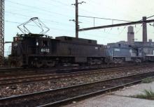 Conrail E-33s 4602 &4608 lead a westbound freight past the station at Frankford Junction, Philadelphia, Pa. 1978