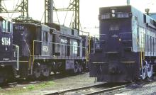 Enola's busy engine terminal in May, 1977 shows E-33 4604 and E-44 4417 still in PC lettering.