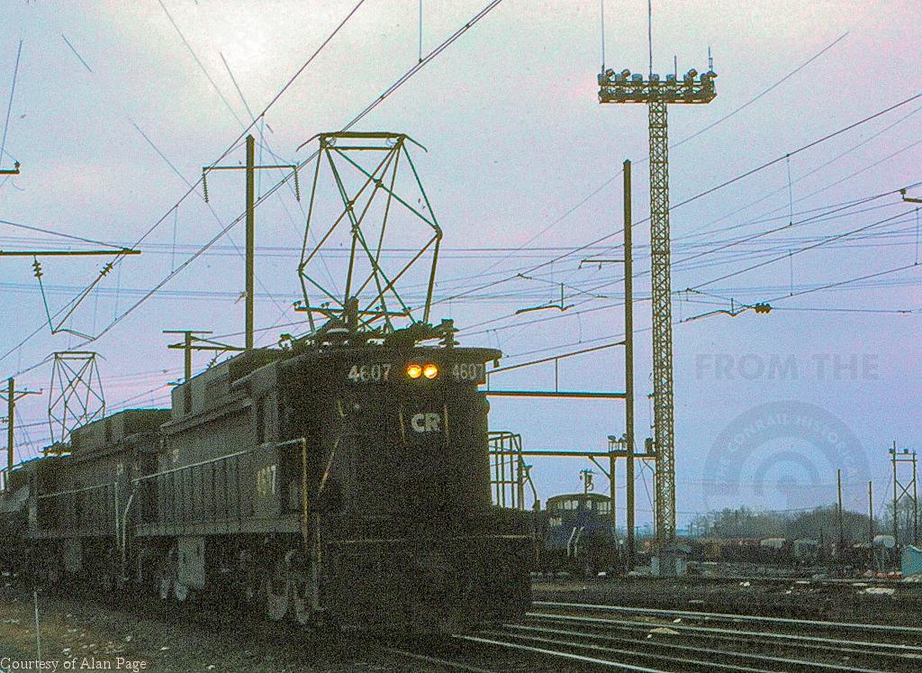 CR E33's 4607 and 4609 pause at Morrisville yard in March, 1979.