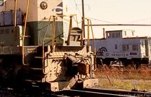 CR 46111 R N-3 class MOW caboose rests behind ex-RDG GP30 2186 at Morrisville yard in November, 1978.