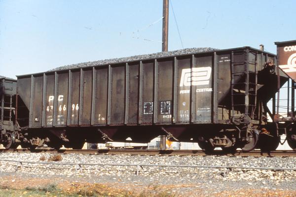 Car is ex PRR 226617 and was built 7-65. Pictured here likely in late 1989 near the reclamation shop in Hollidaysburg, about to be cut down to the frame for the new coalporter program. It was rebuilt 2-90 into CR 503019 class G52H coalporter. Color print scan.