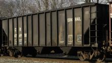 Conrail 476955 is seen at Cove, PA, wearing a non-standard black scheme