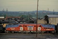Two high school railfans came across a prize during our first trip to Enola in May, 1977. Late in the day, my friend zoomed in on CR GG-1 4800 as it sat in it's wild Bicentennial paint scheme.