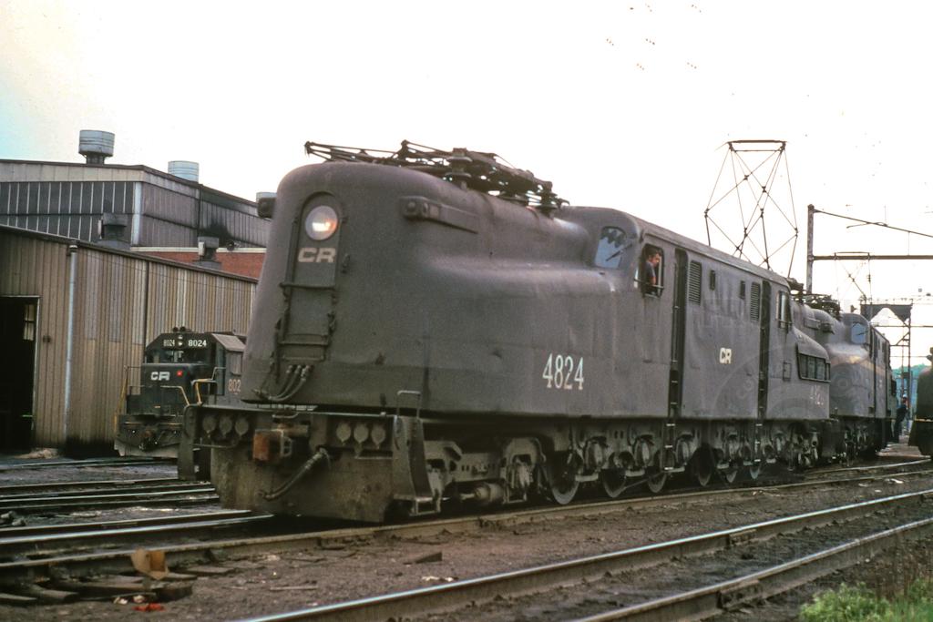 CR GG-1 4824 and 4850 wait between assignments at Enola in May, 1977.