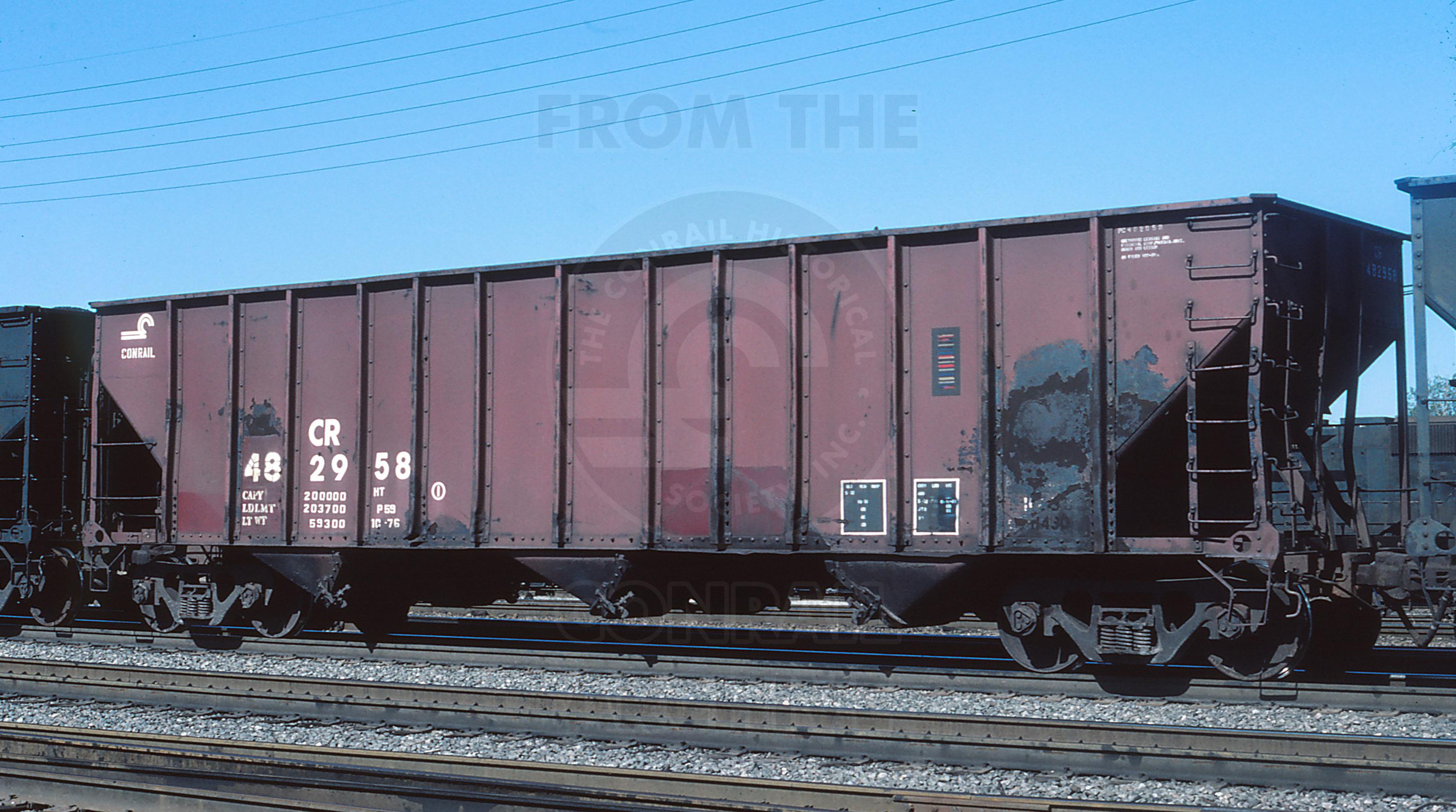 CR 482958 is seen at Cleveland, OH on 10/2/82. Car is ex PC 482958, built 5-72 by Bethlehem Steel and was painted P59 10-76. It was deleted 8/4/94.