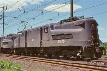 CR GG-1 4835 leads 4850 as they roll through Morrisville in June, 1979.
