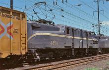 CR GG-1 4850 follows lead unit 4835 as they roll through Morrisville in June, 1979.