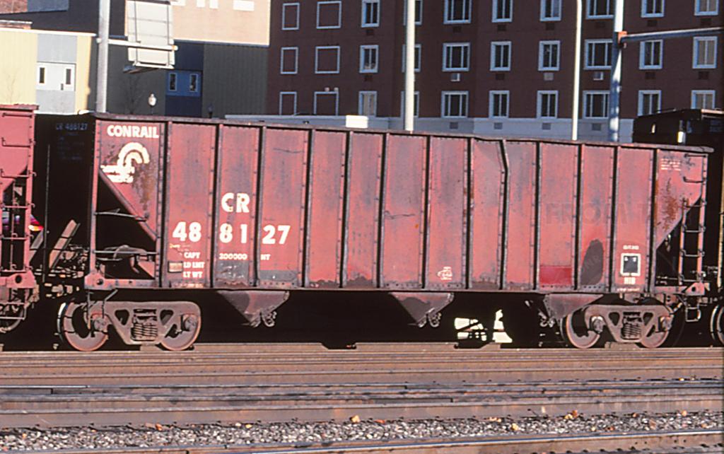 CR 488127 is seen in the consist of a WB at Altoona, PA on 11/24/96. Car was built 9-78 and was later restenciled to NYC 488127 and is still active as of 1/4/13.