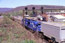 Conrail B36-7 5000 is seen trailing on a westbound TV train at Mifflin, PA in 1993.