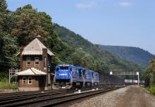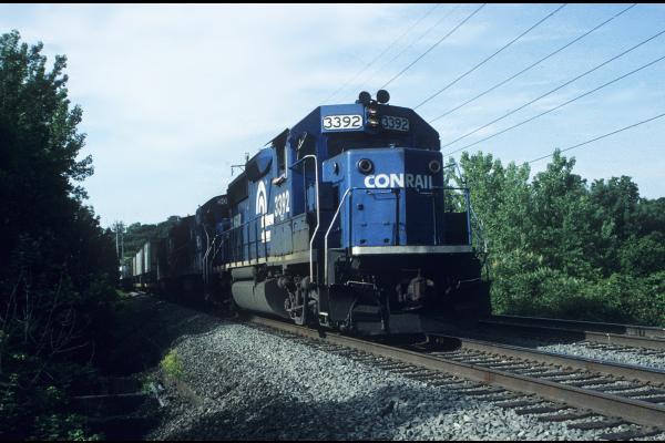 I was equally as fond of the B36-7s on Conrail, as I was on Seaboard System. As a matter of fact, it was by testing four Conrail units, as well as four MP GP50s, that Seaboard made its decision to purchase the B36-7s. Three of the units bring a westbound Conrail intermodal train upgrade past MG Tower on Sept. 8, 1984.