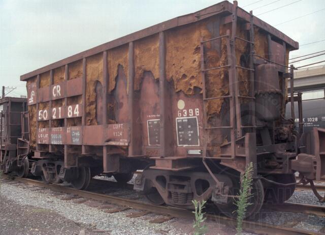 Car is ex PRR 13985 and is seen here in August 1995. Car was one of 110 "wooly jennies" that were insulated with foam by the PRR. Info courtesy of John Almeida.