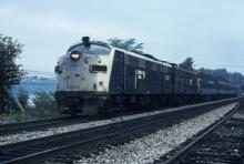 Conrail was still operating NYC commuter trains in 1978 and most FL9's were still lettered PC. FL9's 5027 and 5017 depart Garrison Landing with a short City bound train.