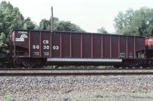 CR 503003 is seen on an eastbound at Rockville, PA on 8/27/90. Car is ex CR 478771/PRR 230235 and was built 2-67, rebuilt 2-90. It was deleted on 3/15/03.