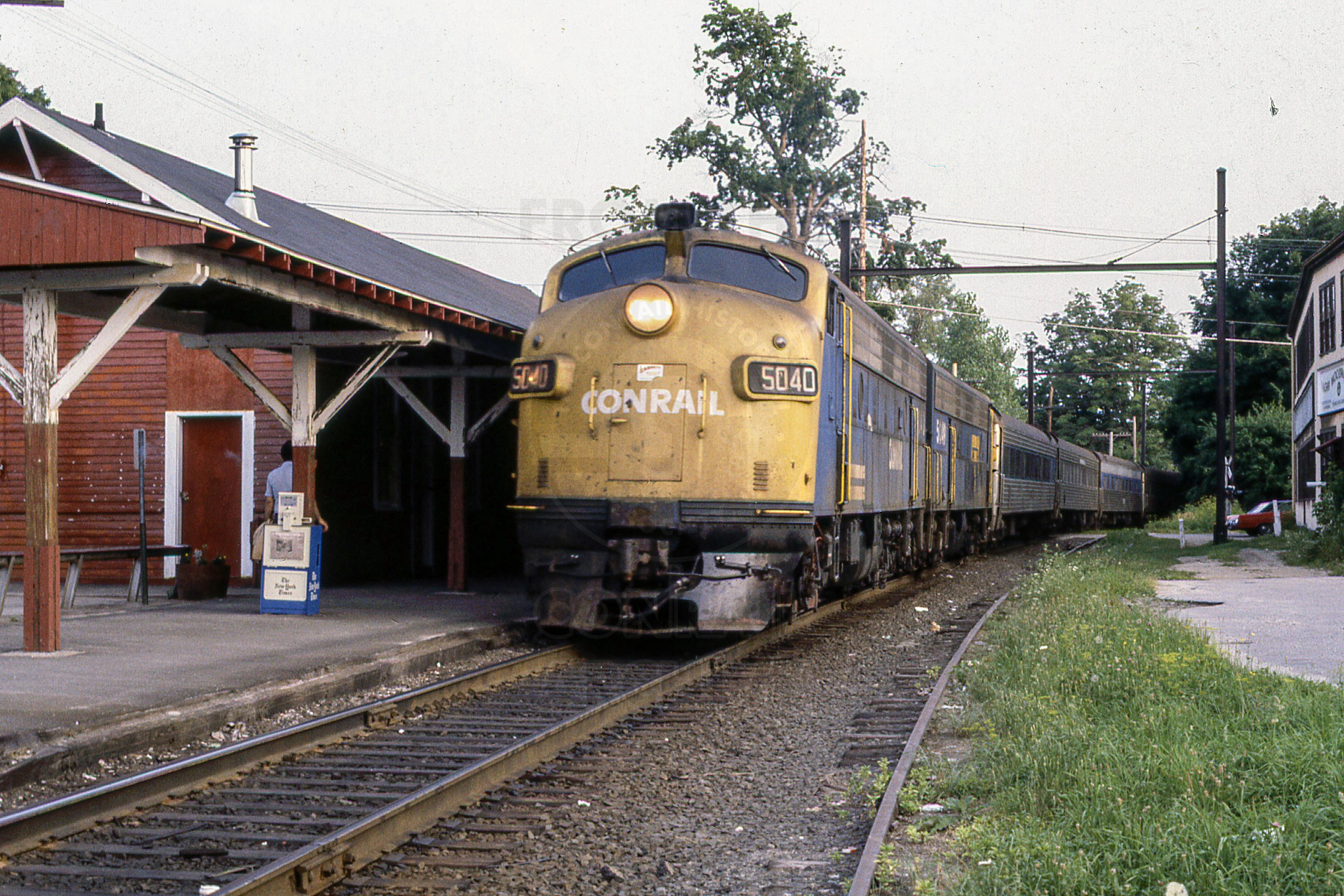 Previous Next Photo By Rich Bowes CR 5040 EMD FL9 BETHEL CT WITH TRAIN AT STATION Year 1982 Original Date 8/1/82 Location Bethel CT Equipment Type EMD FL9 Conrail Number 5040 Additional Galleries Rich Bowes' Conrail Photographs Subject(s) Conrail Passenger Service Collection CRHS Conrail Photo Archive Contributions