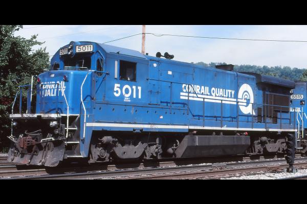A brace of new B36-7's are throttled up as an eastbound Trailvan departs Conway Yard.
