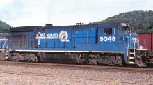 Previous Next Photo By Jeff Weaver CR 5048 is seen on RR-282 at Conemaugh, PA on 8/20/98. Year 1998 Original Date 8/20/98 Location Conemaugh PA Equipment Type GE B36-7 Conrail Number 5048 Collection CRHS Conrail Photo Archive Contributions