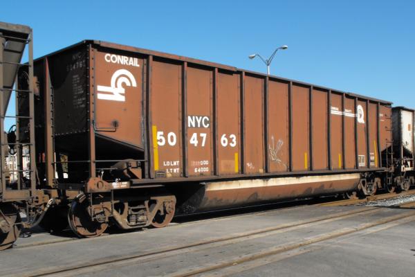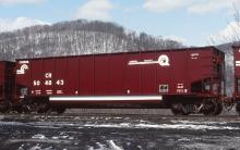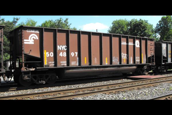 CR 504843 is seen at West Brownsville, PA on 3/13/92. Car is ex CR 473197/PRR 181280, built 7-64 and was rebuilt 1-92. It was re-stenciled to NYC 504844 around 1/6/00 and then was deleted 11/14/08.