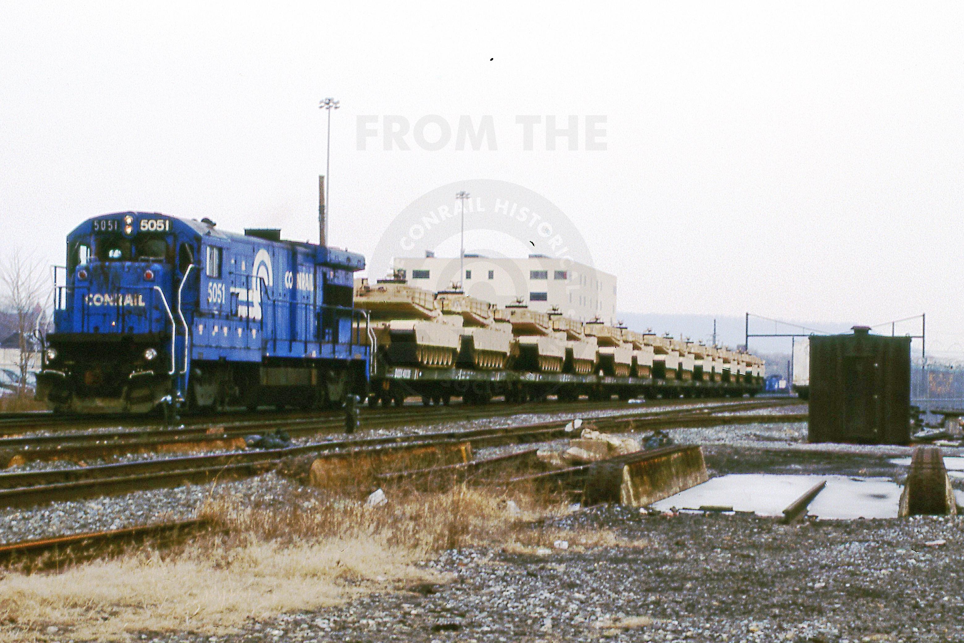 Previous Next CR 5051 GE B36-7 Pittsburgh Line Harrisburg PA with train MIL101 Photo By Rich Bowes Year 1997 Original Date 3/1/97 Location City Harrisburg PA Conrail Number 5051 Additional Galleries Rich Bowes' Conrail Photographs Collection CRHS Conrail Photo Archive Contributions