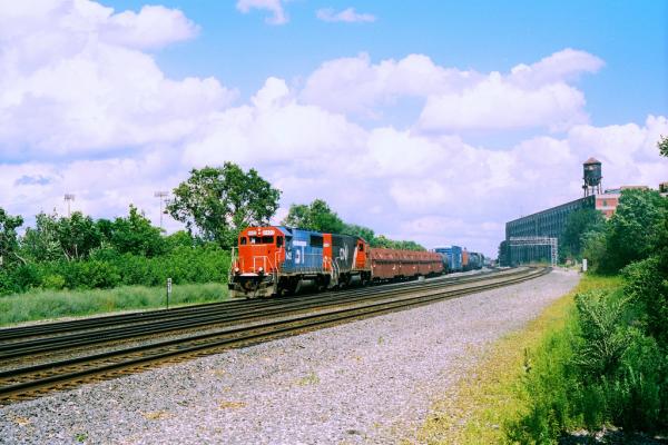 An unnamed TV train rolls past Utica station behind a power set consisting of three GE's and a pair of EMD's, a consist that would remain a constant over the years for CR trains on the Chicago Line. I have posted a number of photos from ten years later. It's hard to tell the time period by looking at the power.