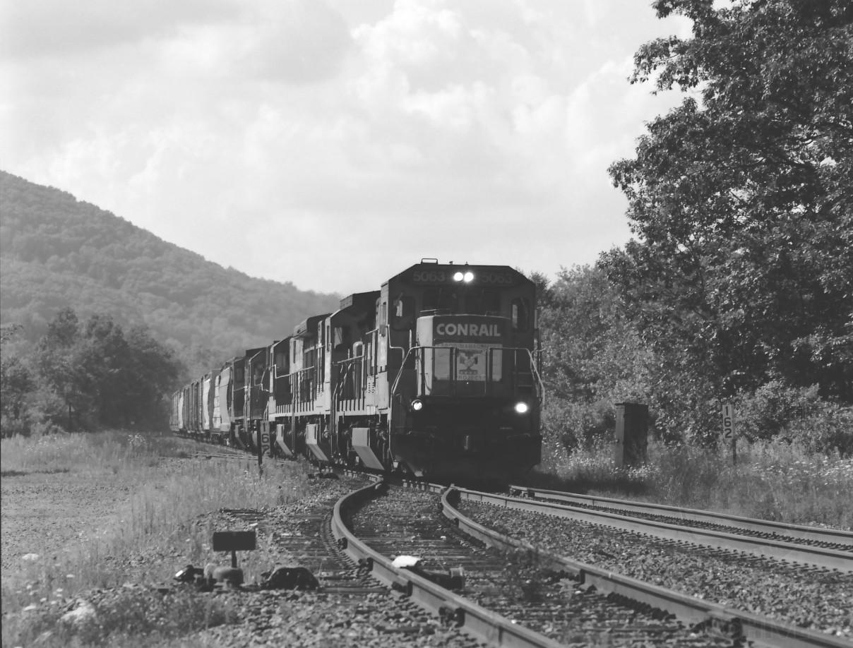 B40-8 5063 heads up SELA at State Line in Canaan, NY. on Aug. 17, 1996.