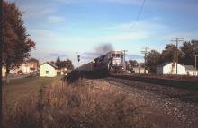 Previous Next CR 5066 and fellow GE leads XUP-49 at Waterloo, IN on October 9, 1996. This train was delivering brand new hoppers to the Union Pacific railroad that had been built in Johnstown, PA. Photo By Chris Howe Year 1996 Original Date 10/9/96 Location City Waterloo IN Conrail Number 5066 Additional Galleries Chris Howe's Conrail action 1996 Collection CRHS Conrail Photo Archive Contributions