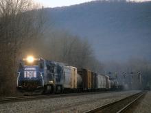 Previous Next Photo By Jim Kleeman A morning ENIN heads westbound, lead by a GE B40-8 through Cove PA, just west of Harrisburg on the Pittsburgh Line. Year 1989 Original Date 1/29/89 Location Cove PA Equipment Type GE B40-8 Conrail Number 5073 Additional Galleries Jim Kleeman's Conrail Line or Locale Conrail's Pittsburgh Line Collection CRHS Conrail Photo Archive Contributions
