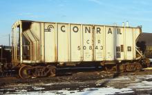 Previous Next Photo By Unknown Wrecked CR 50843 is seen at Akron, OH in Nov of 1987. Car is ex PRR 256197, built 5-54 and was rebuilt to a ballest car in 6-77. Year 1987 Original Date 11/1/87 Equipment Type Class H34 Conrail Number 50843 Collection CRHS Conrail Photo Archive Contributions