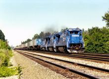 CR 5086 B40-8 leads a Westbound TV train at MP125